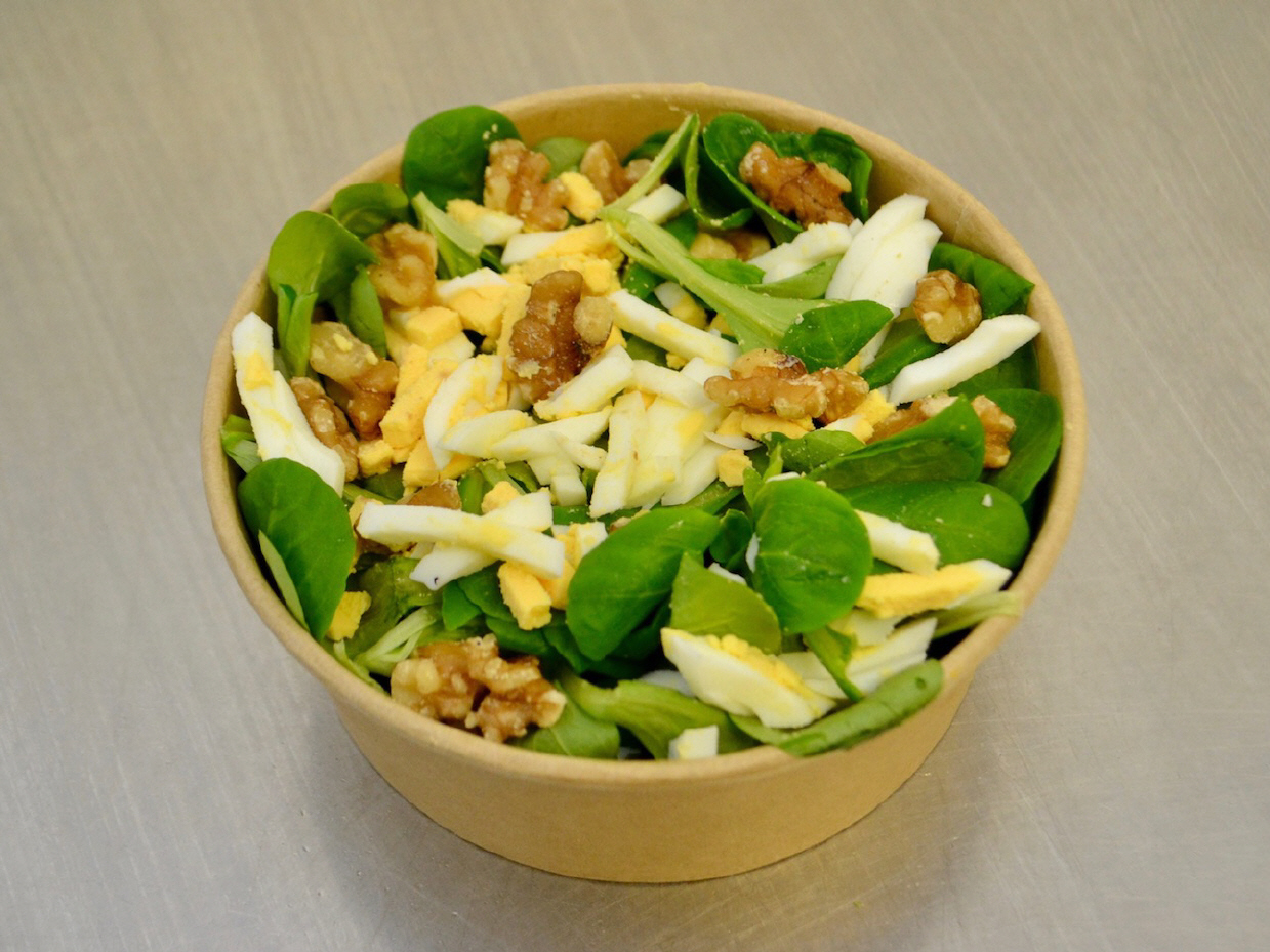 Nüsslisalat, Ei aus Bodenhaltung, Baumnüsse, Croutons